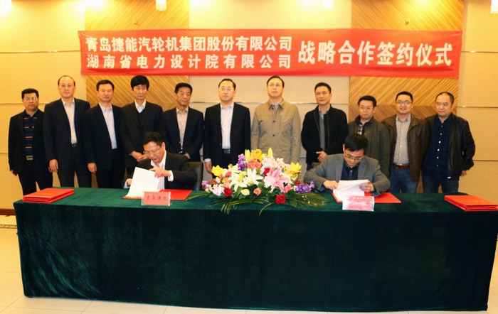 2016年3月14日,中國能源建設(shè)集團(tuán)湖南省電力設(shè)計(jì)院有限公司李屹立院長一行九人來我公司進(jìn)行戰(zhàn)略合作洽談。雙方在信任、合作、共贏的友好氣氛中,就我公司汽輪機(jī)、發(fā)電機(jī)和空冷島的配套服務(wù)以及在電力建設(shè)方面進(jìn)行了廣泛而深入的交流。雙方經(jīng)交流達(dá)成一致,簽署了“青島捷能汽輪機(jī)集團(tuán)股份有限公司與中國能源建設(shè)集團(tuán)湖南省電力設(shè)計(jì)院有限公司戰(zhàn)略合作協(xié)議”,并與我集團(tuán)子公司青島捷能電力建設(shè)有限公司簽署了“電力工程項(xiàng)目合作意向書”。