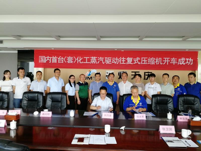 2018年6月27日,河南晉煤天慶煤化工有限責(zé)任公司召開產(chǎn)品驗(yàn)收會(huì),宣布國(guó)內(nèi)首臺(tái)低品位蒸汽驅(qū)動(dòng)往復(fù)式壓縮機(jī)項(xiàng)目開機(jī)成功。該項(xiàng)目使用我公司所供K23L1R-1#機(jī)組,標(biāo)志著我公司在低品位蒸汽利用技術(shù)研發(fā)和市場(chǎng)開拓取得了新突破。