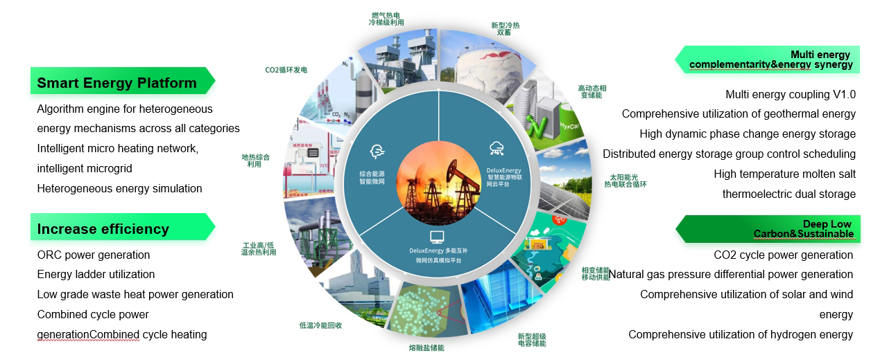 On the basis of decades of energy comprehensive utilization technology and experience, Jieneng Group has designed personalized "multi energy coupling" energy use schemes based on the underlying logical architecture of energy data analysis platform, machine learning, cognitive computing, edge computing, and other aspects, such as multi energy complementation, energy use management, green energy management, carbon reduction management, and equipment management. This technical solution is currently rare in China and has begun to be promoted and applied in the PetroChina system.